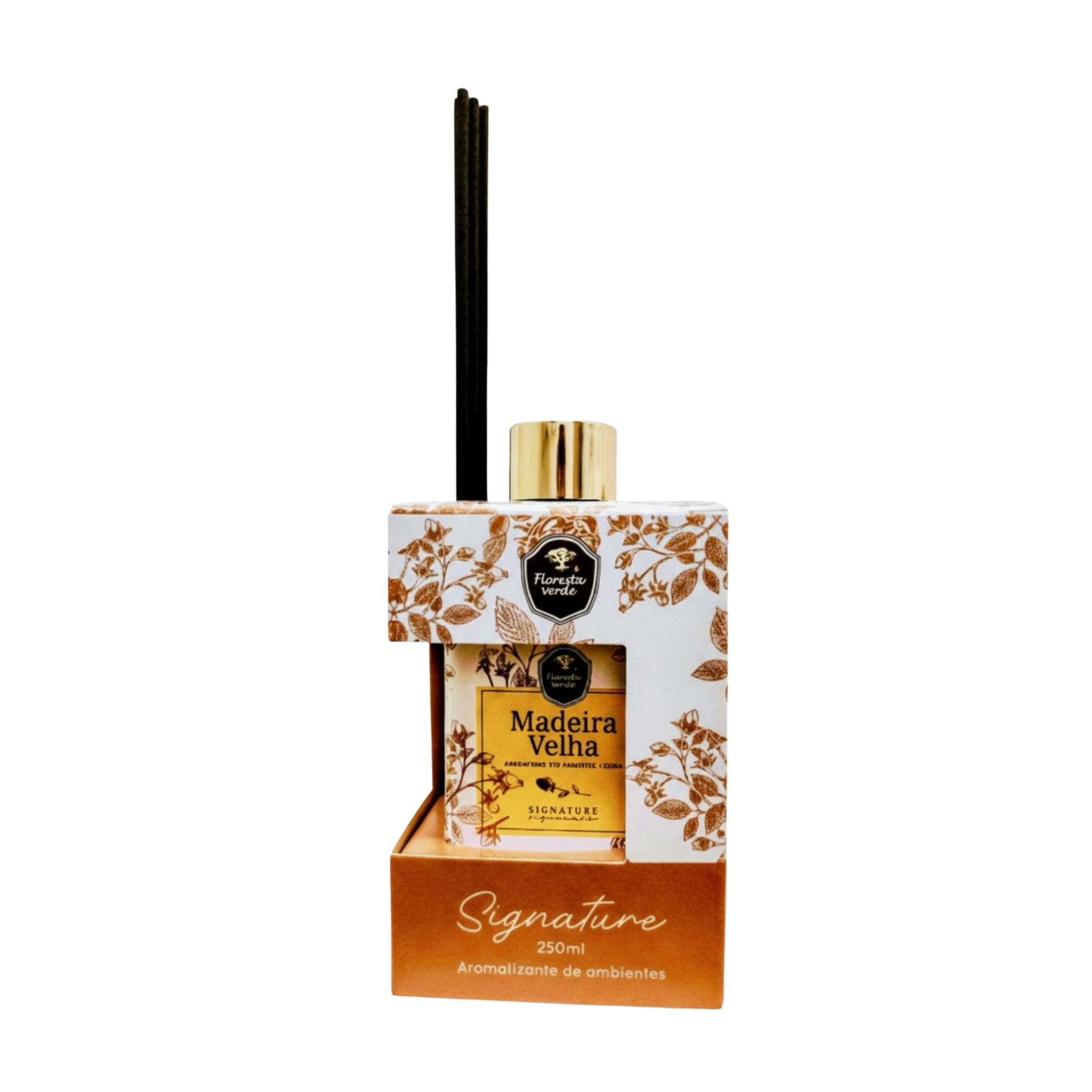 Envolva-se no aroma rico e acolhedor do Difusor de Ambiente Madeira Velha da linha Signature da Floresta Verde. Este difusor elegante, com seu recipiente de vidro sofisticado, traz o charme rústico e a profundidade das notas amadeiradas, proporcionando um ambiente quente e acolhedor. As varetas de fibra de algodão garantem uma difusão constante e equilibrada, perfumando o espaço com uma fragrância que remete à madeira envelhecida, perfeita para criar uma atmosfera de conforto e sofisticação.